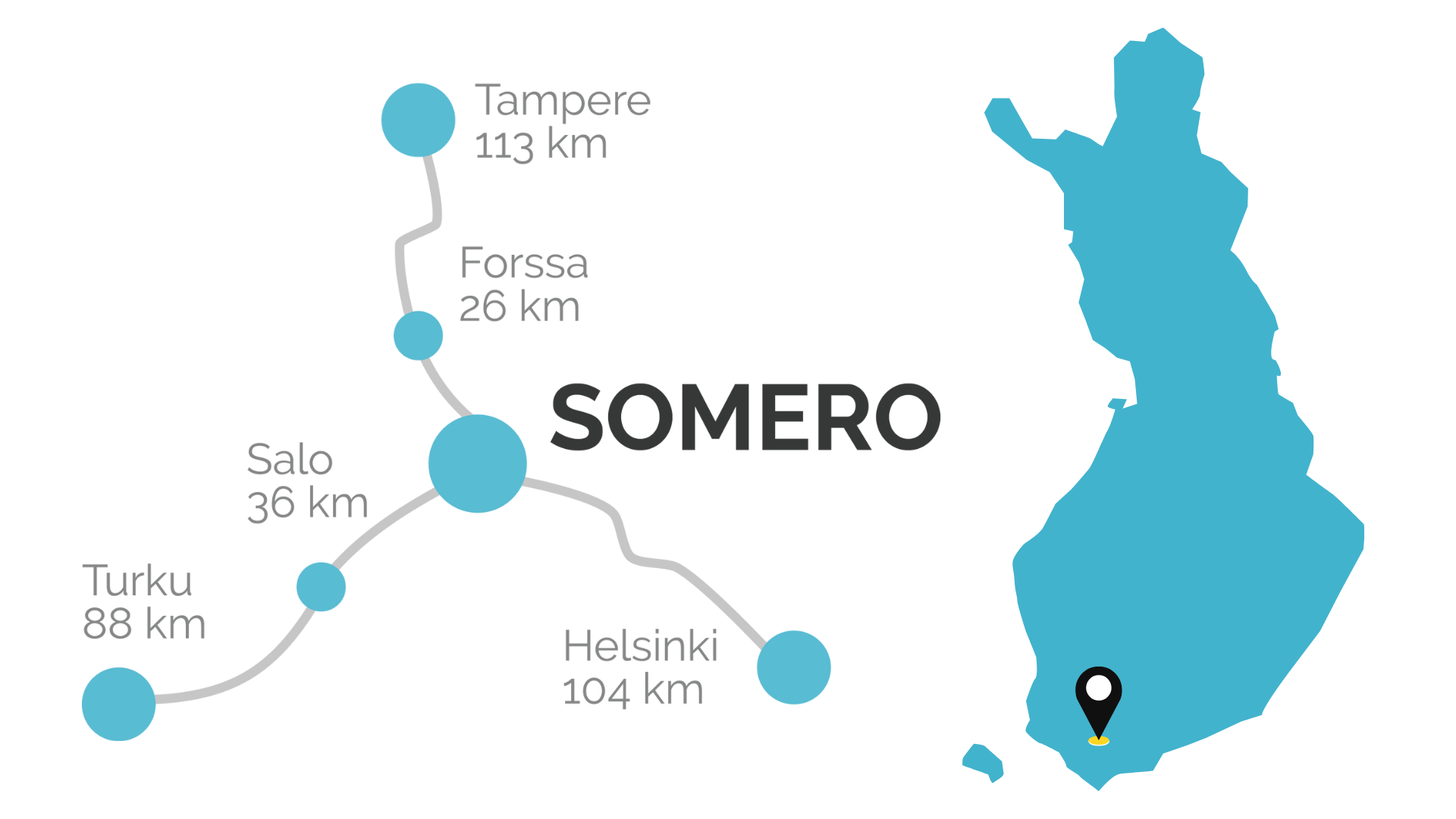 Sijaitsemme aitiopaikalla Etelä-Suomen kasvukolmion sisällä. Sadan kilometrin säteeltä löydät lähes puolet suomalaisista sekä kaiken mitä yrityksesi ympärilleen tarvitsee: satamat, korkeakoulut, valtaväylät ja lentokentät. Silti meillä vallitsee oma rauha olla ja tehdä.